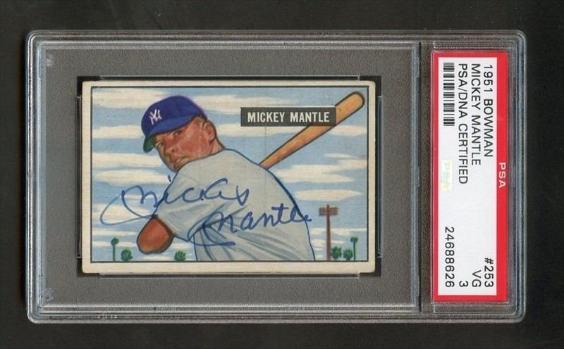 lot detail 1951 bowman #253 mickey mantle signed rookie card – psa/dna mint 9