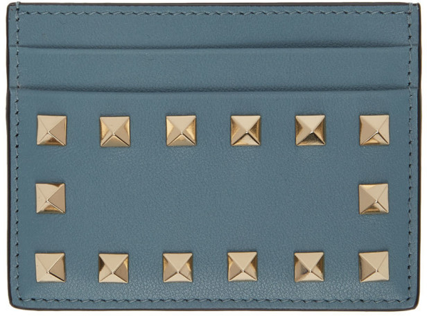 valentino garavani rockstud detail zip cardholder in blau modesens