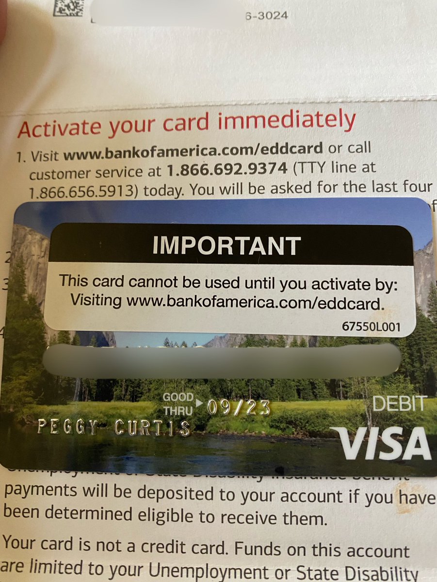 boa edd debit card to cover living expense during unemployment