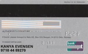bank card: skandia banken betale (skandiabanken, norway) col:no vi 0020