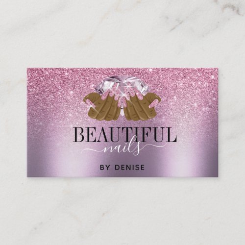glitter nail salon manicure pink beauty stylish business card business card branding