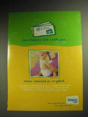 2001 pampers diapers gift certificate ad re gifted ebay